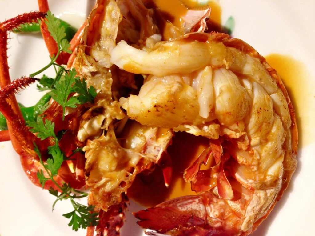 ④オマール海老or 伊勢海老のグリエ海老のエッセンスと季節のサラダ